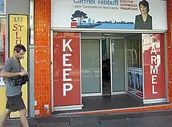 Refshauge's retirement in 2005 sparked another by-election on 17 September, held simultaneously with by-elections in Macquarie Fields and Maroubra. While the Liberal Party did not field a candidate, the ALP faced a strong challenger in the Deputy Mayor of Marrickville, Sam Byrne, running as a Greens candidate. The ALP subsequently drafted Education Minister Carmel Tebbutt, who was then a member of the Legislative Council, as their candidate, as she was seen to be the best chance of holding the seat.[4] Despite Tebbutt's profile, she faced significant challenges from Byrne, but ultimately won out - although the Green vote was the highest in Australian history at that time. Tebbutt retained the seat in the 2007 and 2011 state elections, though her majority was successively reduced. Tebbutt was married to future Prime Minister Anthony Albanese, the member for the federal electorate of Grayndler; most of Marrickville is located in Grayndler.[5]