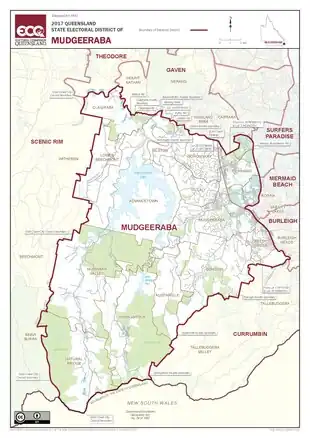 Mudgeeraba is an electoral district of the Legislative Assembly in the Australian state of Queensland. Based on the Gold Coast, the district has been held by both sides of politics over the course of its short history.[1]
