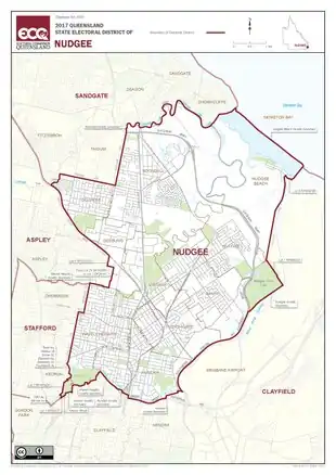 Nudgee is an electoral district of the Legislative Assembly in the Australian state of Queensland. It is located in the north-eastern suburbs of Brisbane.[1]