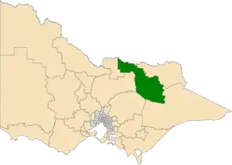 It largely covers areas from the abolished district of Murray Valley, centering on the city of Wangaratta. It includes the towns of Yarrawonga, Cobram, and other towns in the local government areas of Moira, Wangaratta, and Alpine.[2]