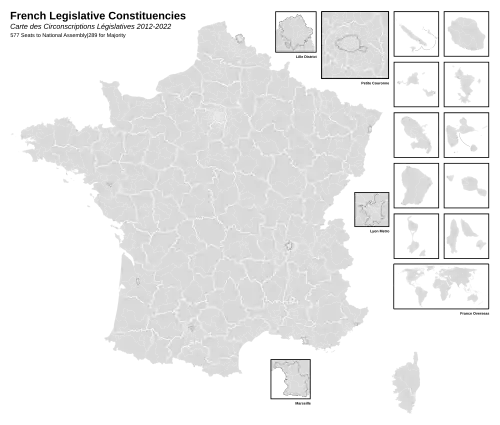 Image of the 577 legislative circonscriptions or constituencies in France (after 2012).