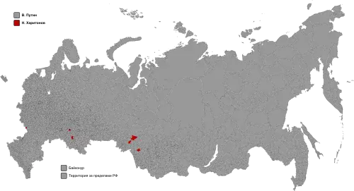 2004 election. Grey indicates a win by Putin, red a win by Kharitonov.
