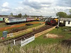 The track layout comprised two three road fans of sidings. Those at the end of the site adjacent to the Midlands Air Museum were complete with a headshunt that ran through a 40-metre cutting that was excavated by the members of the original steam centre in the early nineties. The sidings nearest Rowley Road were unconnected. The sidings were protected by an inner fence to create a secure compound.