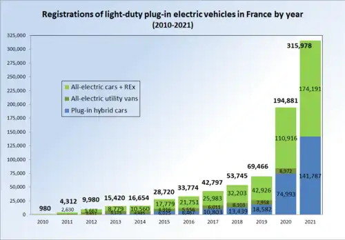A total of 138,033 light-duty plug-in vehicles were registered in 2021, consisting of 77,842 plug-in hybrids, 57,473 all-electric cars, and 2,718 all-electric vans. - ^ "Mitsubishi Outlander PHEV clears 100,000 sales milestone in Europe". JATO Dynamics (Press release). Tokyo: Mitsubishi Motors. 29 January 2018. Retrieved 1 February 2018.