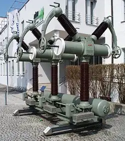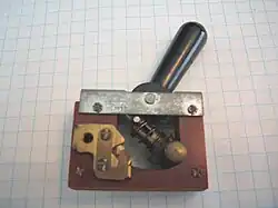 An electrical contact is an electrical circuit component found in electrical switches, relays, connectors and circuit breakers.[1] Each contact is a piece of electrically conductive material, typically metal. When a pair of contacts touch, they can pass an electrical current with a certain contact resistance, dependent on surface structure, surface chemistry and contact time;[2] when the pair is separated by an insulating gap, then the pair does not pass a current. When the contacts touch, the switch is closed; when the contacts are separated, the switch is open. The gap must be an insulating medium, such as air, vacuum, oil, SF6. Contacts may be operated by humans in push-buttons and switches, by mechanical pressure in sensors or machine cams, and electromechanically in relays. The surfaces where contacts touch are usually composed of metals such as silver or gold alloys[3][4] that have high electrical conductivity, wear resistance, oxidation resistance and other properties.[5]