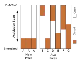 The National Association of Relay Manufacturers and its successor, the Relay and Switch Industry Association define 23 distinct electrical contact forms found in relays and switches.[13] The following contact forms are particularly common: