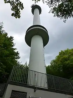 As in many other countries, power companies in Germany use radio relay links for data transmissions. In most cases the antennas used therefore are installed on lattice towers, but at some sites concrete towers are used for this purpose. The 87 metres tall radio relay tower on Goose Neck mountain (German: Gänsehals) near Bell is the only of these towers equipped with a public observation deck. It is situated in a height of 24 metres and accessible by a staircase.