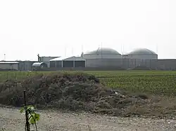 Fossil fuel thermal power plants provide the majority of electricity production in Italy, with a total of 192.1 TWh in 2018, or 66.3% of the electricity produced in the country.[17] During the decade 1997-2007, natural gas power plants experienced strong growth, rising from 24 to 55% of total electricity production; since 2009 they have fallen sharply, falling to 33.5% in 2014, but still representing 53.4% of thermal generation; from 2015 to 2017, they resumed their progression: +35% in two years, rising to 48.4% of total electricity production and 67.2% of thermal production in 2017 (66.9% in 2018);[17] the rest of this production is provided by coal (14.8%; down 42% from its peak in 2012 after experiencing a 24% rebound in 2011-12, as in the whole of Europe due to the drop in coal prices caused by the shale gas boom in the United States), gases derived from processes (1.3%), petroleum products (1.7%), other fuels (mainly biomass, as well as tar, refinery gas, recovered heat, etc.) representing 15.3%.[17]