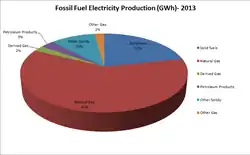 The fuels consumed for the production of electricity in 2018 were:[19]