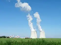 The updated energy strategy of 2019 envisions a gradual phase out of coal power share in total electricity generation from 2015's 46.2% down to 15.5% by 2040. The strategy sees nuclear energy as a non-carbon source of energy to be used during a slow transition to renewables in order to minimize the use of carbon-emitting fossil fuels that cause climate change. The increase in the share of nuclear, renewables and natural gas is to fill in the energy demand created by the impending gradual shutdowns of coal power stations.[4] This 2015-approved energy strategy expects construction of an additional nuclear reactor in the Temelín Nuclear Power Station and another one in the Dukovany Nuclear Power Station with the possibility of further expansion to two reactors in each power station. The older station of the two, Dukovany, is to be expanded before Temelín.[5] As of 2019, the financing models and contractor selection for the planned reactors are being negotiated by the government.[6]