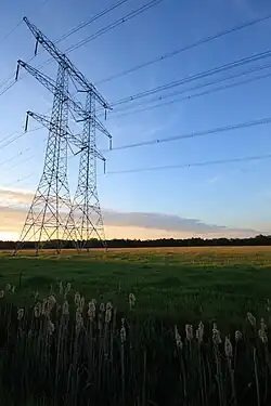 The Netherlands has three electricity import/export connections with Germany and two with Belgium, both alternating current power lines.[2][23] Additionally, it has direct current (HVDC) submarine power cables to Norway (the 700 MW NorNed cable since 2008), England (the 1,000 MW BritNed cable since 2011),[23][2] and Denmark (the 700 MW COBRAcable cable since 2019). In addition, a fourth connection with Germany is being realized.[2] A 24 MW / 48 MWh grid battery opened in 2023,[24] and a 300 MW / 1200 MWh battery started construction in 2025.[25]