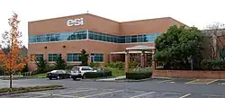 All facilities were located at S.E. 43rd & Stark in Portland until 1956, when the first stage of a new headquarters and manufacturing plant on Macadam Avenue, in South Portland, was opened. The new plant was destroyed by fire[11] in 1957,[16] and had to be rebuilt. In 1962, ESI announced plans to create a new development called "Sunset Science Park", to be built in the Cedar Mill area of unincorporated Washington County, Oregon, designed to attract other technology companies, with ESI as an anchor.[17] The company moved its headquarters to the Sunset Science Park location in 1963, and the manufacturing facilities followed in 1966, vacating the Macadam Avenue site. The complex on N.W. Science Park Drive, which remained ESI's headquarters until 2021, had a Portland mailing address, but was not in the city of Portland proper; it occupied unincorporated land which is now adjacent to the city limits of Beaverton.