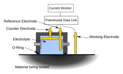 An Electrochemical Fatigue Crack Sensor (EFCS) is a type of low cost electrochemical nondestructive dynamic testing method used primarily in the aerospace and transportation infrastructure industries. The method is used to locate surface-breaking and slightly subsurface defects in all metallic materials.[1] In bridge structures, EFCS is used at known fatigue susceptible areas, such as sharp-angled coped beams, stringer to beam attachments, and the toe of welds. This dynamic testing can be a form of short term or long-term monitoring, as long as the structure is undergoing dynamic cyclic loading.