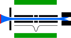 The strong charge needed for radial confinement of the ions requires large electron beam currents of tens up to hundreds of milliampere. At the same time, high voltages (up to 200 kilovolts) are used for accelerating the electrons in order to achieve high charge states of the ions.