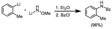 - ^ Beak, Peter; Selling, Gordon W. (1989). "Displacements at the nitrogen of lithioalkoxylamides by organometallic reagents". J. Org. Chem. 54 (23): 5574–80. doi:10.1021/jo00284a034.