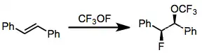 Simple fluorinations of alkenes often produce complex mixtures of products. However, cofluorination in the presence of a nucleophile proceeds cleanly to give vicinal alkoxyfluorides.[11] Alkynes are not fluorinated with N-F reagents. An anionic surfactant was used to facilitate contact between aqueous Selectfluor and the alkene.