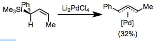 A few metal electrophiles react with allylsilanes to give interesting products. Reactions of allylsilanes with thallium tris (trifluoroacetate) form electrophilic allylthallium(II) compounds. Palladation of allylsilanes provides π-allylpalladium compounds.[21]