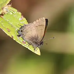 - ^ a b Nishida, Kenji; Robbins, Robert K. (11 November 2020). "One side makes you taller: a mushroom–eating butterfly caterpillar (Lycaenidae) in Costa Rica". Neotropical Biology and Conservation. 15 (4): 463–470. doi:10.3897/neotropical.15.e57998. eISSN 2236-3777.