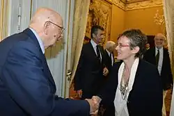 Cattaneo was appointed to the Senate of Italy as a Senator for life, the youngest in Italian history, by then President Giorgio Napolitano on 30 August 2013, along with Claudio Abbado, Renzo Piano and Carlo Rubbia.[6] Of his choice of her as Senator for Life, President Napolitano said: "choosing her is meant as an appreciation and an encouragement for many Italians of the new generations who commit themselves, amid difficulties, to scientific research”.[7]