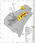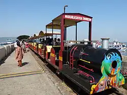 Elephanta Island, or Gharapuri, is about 11 km (6.8 mi) east of the Gateway of India in the Mumbai Harbour and less than 2 km (1.2 mi) west of Jawaharlal Nehru Port. The island covers about 10 km2 (3.9 sq mi) at high tide and about 16 km2 (6.2 sq mi) at low tide. The island has volcanic origins, and was formed during an eruptive sequence of the Deccan Traps volcanic province during the latest Cretaceous or earliest Paleocene (66 to 65 million years ago).[18] Gharapuri is a small village on the south side of the island.[7] The Elephanta Caves is connected by ferry services from the Gateway of India, Mumbai between 9AM and 2PM daily, except Monday when the Caves are closed. Mumbai has a major domestic and international airport, as well as is connected to the Indian Railways.[19]