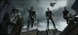 Set with Lara Croft (Angelina Jolie) along with Bono, the music video also acts as a short film with its story about the rescue of the Edge (inserted into footage from the 2001 film Lara Croft: Tomb Raider) from the "evil U2". It begins with Bono receiving a phone call in the middle of a crowded New York street from a mysterious caller known as "evil Bono", who states that they have captured The Edge and demands for "the key". The caller proceeds to give an ominous message to a puzzled Bono that he himself is surrounded before ending with the words "not even Lara Croft can help you now". After escaping and rescuing civilians from several of the "evil U2's" murder attempts, the band reunites and performs a "rock-off" against their evil counterparts, which ends with the "good U2" emerging victorious. The "good U2" join forces with Croft and leave the scene for an unknown place, passing a street with levitating vehicles and a pachyderm (remnants of the "evil U2's" crimes), ending with a Boeing 747-400 flying overhead before fading to black (the plane is also seen at the very beginning of the video).