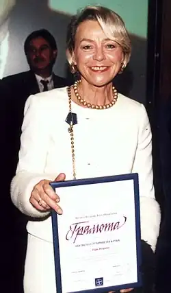 Elfie Wörner (31 July 1941 in Berlin – 4 July 2006 in Munich) was a German journalist, humanitarian and the second wife of Manfred Wörner, who served as the Secretary General of NATO. Elfie Wörner took part in numerous charitable and other non-governmental activities, and was the patron of the German Army Social Work Society, the Special Children in German Military Families,[1] and the Manfred Wörner Foundation,[2] and was a member of the advisory board of Hilfe für Bosnien-Herzegowina (Help for Bosnia and Herzegovina).