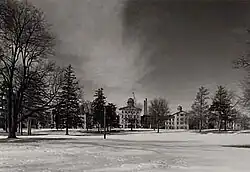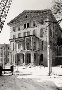 ![]() Main entrance of the Center Building of the Elgin State Hospital in early 1993, just before demolition | |