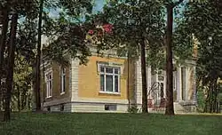 Built in 1907 as the Lord Memorial Museum and opened in 1920 as the Elgin Audubon Museum, it is the oldest museum building in Illinois still used as such. The collection was the gift of Mr. and Mrs. G. P. Lord, and was first exhibited in the Lords Park Pavilion in 1898. However, the Lords asked that their collection be housed in its own building, and local architect David E. Postle was contracted to design the building in 1904. The original plan for the museum called for three wings, but only the west wing and central hall were completed before funds ran out.[2] The east wing was added in 1998, restoring the neo-classical symmetry of the building's original design, and was built to match the original structure, including the brick and oolithic limestone detailing. The museum's interior includes beautiful and original oak woodwork, plaster wall ornamentation and ceramic tile floors.