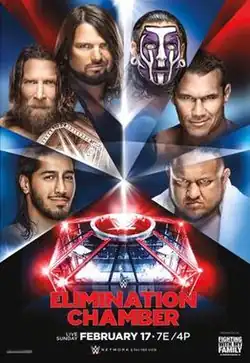![]() Promotional poster featuring Mustafa Ali, Daniel Bryan, AJ Styles, Jeff Hardy, Randy Orton, Samoa Joe, and the Elimination Chamber structure | |||