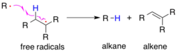 Radicals can undergo a disproportionation reaction through a radical elimination mechanism (See Fig. 1). Here a radical abstracts a hydrogen atom from another same radical to form two non-radical species: an alkane and an alkene.