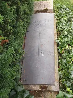 As a well-known pre-war author who became victim of the Nazi racial laws Langgässer received a lot of public and academic attention after her death. Her works found fame and a readership in the immediate post-war period. Less noted have been her letters, which were published by her husband after her death in 1954 under the title ...soviel berauschende Vergänglichkeit: Briefe 1926–1950 (...so much intoxicating transience: Letters 1926–1950).[5] Langgässer's letters were republished by her granddaughter Elisabeth Hoffmann, the daughter of Cordelia, in 1990.[6] The letters give an insight into the effects the Nuremberg Laws on her family and cover the period from 1933 until 1945.[1]