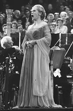 Dame Olga Maria Elisabeth Friederike Schwarzkopf, DBE (German: [eˌliːzabɛt ˈʃvaʁt͡skɔp͡f] ⓘ; 9 December 1915 – 3 August 2006) was a German-born Austro-British lyric soprano. She was among the foremost singers of lieder, and is renowned for her performances of Viennese operetta, as well as the operas of Mozart, Wagner and Richard Strauss.[1][2] After retiring from the stage, she was a voice teacher internationally. She is considered one of the greatest sopranos of the 20th century.[3]