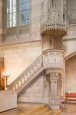 The Elisabethenkirche, or Offene Kirche Elisabethen, is a 19th-century church building in the centre of Basel, next to the Theater Basel, in Switzerland. It is a well detailed example of Swiss Gothic Revival style churches. It has a 72 metres (236 ft) tall bell tower and spire. The tower has internal stairs.