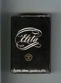 Elita is a Latvian brand of cigarettes that was produced between 1967 and 2009 by the Latvian company "Rīgas Tabakas Fabrika" and later by British American Tobacco. According to the data submitted by the Latvian State Revenue Service, Elita was the most sold brand of filtered cigarettes in Latvia for about twenty years.[2]