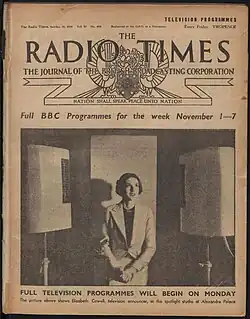She was one of the first three BBC Television Service presenters, along with Jasmine Bligh and Leslie Mitchell.[3][4][5] She began announcing when the Television Service started in 1936 and made her debut on Monday 31 August that year at Alexandra Palace in London. This was a few months before the official launch of BBC Television on 2 November 1936.