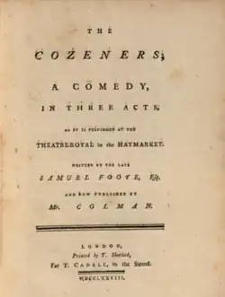 - ^ Foote, Samuel (1778). The Cozeners: A Comedy, of Three Acts, as it was Performed at the Theatre-Royal in the Hay-Market. T. Sherlock.