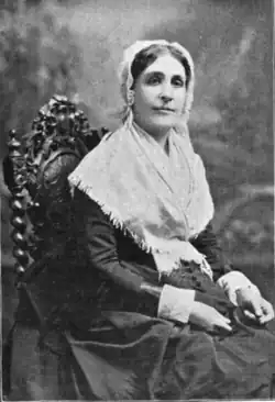 Elizabeth Lownes was born in Baltimore, Maryland, 1835. She was of Scotch and Welsh ancestry. Her parents, Josiah B. and Anna Burdsal Lownes, were Quakers.[3] For several generations her ancestors were members of the Society of Friends, the Quakers. Among those ancestors were several teachers and preachers.[4] After leaving Maryland, the family removed to Montgomery County, Ohio, and settled on a farm near Centerville, Ohio. Elizabeth's siblings included William S., Miriam, Rebecca, and Susan.[5]
