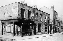 Following an argument on 26 September 1888, Stride and Kidney again separated, and she again took residence at 32 Flower and Dean Street (then a notorious slum and criminal rookery[48]), informing a fellow lodger named Catherine Lane she and Kidney "had had a few words".[49] Over the following days she regularly earned money by performing cleaning duties, both at the lodging house and for local residents, being observed by the housekeeper, Elizabeth Tanner, to be a quiet woman who occasionally performed cleaning work for the local Jewish community.[50][n 4]