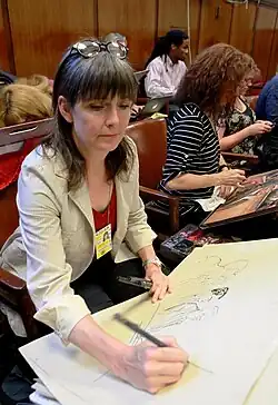 Elizabeth Williams is an American illustrator, courtroom artist and author based in New York City.[1] She has covered many high-profile court cases such as those of John DeLorean, Martha Stewart, John Gotti, Michael Milken, Bernard Madoff, Dominique Strauss-Khan, Michael Cohen, and the Times Square Bomber.[2][3][4] Williams is the author with true crime writer Sue Russell of The Illustrated Courtroom: 50 Years of Court Art, a history of American courtroom sketch artistry published by CUNY Journalism Press in 2014.[5][6]