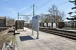 The station is equipped with Amtrak's Quik-Trak ticket machines, public restrooms, information kiosks, and wireless internet.[3] As the Elizabethtown station is unstaffed, all tickets from the station need to be pre-paid, purchased from Quik-Trak, or from a conductor on board the train.[7] Parking is in a 45-vehicle lot located in front of the station and a 100-vehicle "overflow lot [located] down the street."[3] The Red Rose Transit Authority's Route 18 transit bus provides service between the station, Elizabethtown, Mount Joy, and Lancaster.[8]