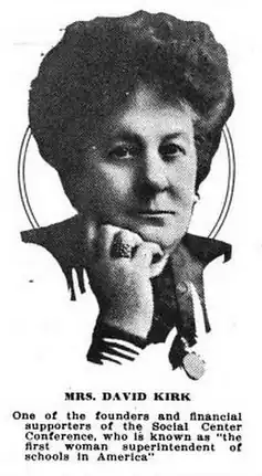 She was born in Bangor, Maine ca. 1861, and taught school in Bradford, Pennsylvania before moving to Pittsburgh. In 1890, she married a wealthy oil man named David Kirk (businessman).[1] She authored My Pilgrimage to Coué (1922).