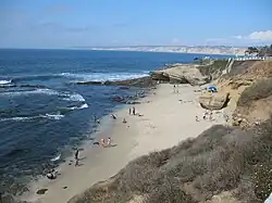 Boomer Beach, located below the bluff adjacent to the Adult Recreation Center, was a popular site for shell collecting, body surfing, and diving. Two belvederes are located directly above the beach. In 2023, the San Diego City Council approved a year-round closure of Boomer Beach for seven years to separate people from a sea lion rookery.[25]