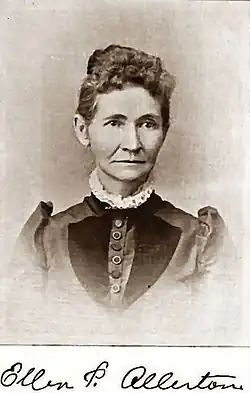 Allerton received her higher education at an academy in Hamilton, New York before becoming a school teacher at around eighteen in Centerville. In 1862, she traveled to Wisconsin where she met and married Alpheus Burton Allerton, a single father of a daughter and son. Her husband, born February 18, 1831, was native of Cuyahoga County, Ohio and a descendant of Isaac Allerton who, along with his wife and children, had made passage aboard the Mayflower on its maiden voyage to Plymouth Rock.[1][2][3]