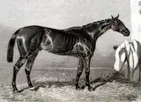 Ellington (1853 – 1869) was a British Thoroughbred racehorse and sire. In a career that lasted from 1855 to 1856 he ran eleven times and won four races. A leading two-year-old in 1855, when his wins included the Champagne Stakes at Doncaster, he won only one of his seven races the following year. That win, however, came in The Derby, where his ability to handle soft ground proved to be decisive. Ellington was retired to stud at the end of his three-year-old season, but had very little impact as a sire.