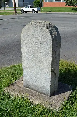 Elliott Grays Marker-Jefferson Davis Highway is a historic route marker located on U.S. Route 1, or Jefferson Davis Highway, in Richmond, Virginia. It was erected in 1929, by the United Daughters of the Confederacy. It is one of 16 erected in Virginia along the Jefferson Davis Highway between 1927 and 1947. The marker is an inscribed granite slab with smooth flat faces and rough-cut edges. It measures 47 inches tall, 25 inches wide and 12 inches thick. The stone is engraved with the text "Jefferson Davis Highway This tree marks the site of Battery 17 of the inner defenses of Richmond, 1862-65, and is planted in soil taken from battlefields A memorial to Confederate Soldiers by the Elliott Grays Chapter U.D.C. 1929."[3]