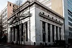 The Bank grew solidly under the Mills and Corbett stewardship and soon had outgrown its quarters, so they constructed a new building as its main office. In 1916 the new First National Bank building was opened at 401–409 SW 5th Avenue, Portland.[35] The building became known as "The Marble Temple".[36]