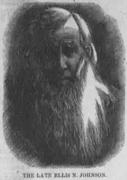 Ellis N. Johnson Jr. was born on May 22, 1826, to Doreas (née Moffat) and Ellis N. Johnson (1789–1889), in Mount Union, Stark County, Ohio. His father was a surgeon, abolitionist, and served as mayor of Mount Union, justice of the peace and surveyor.[1][2][3] His uncle was Job Johnson, an incorporator of Washington, Pennsylvania.[4] Johnson graduated from Marlborough College. He also attended Mount Union College.[3][5] He later graduated from Cleveland Law School.[5]
