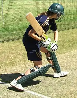 Ellyse Alexandra Perry (born 3 November 1990) is an Australian cricketer and former soccer player. Having debuted for both the national cricket and national soccer team at the age of 16, she is the youngest Australian to play international cricket and the first to appear in both ICC and FIFA World Cups.[3] Gradually becoming a single-sport professional athlete from 2014 onward,[4] Perry's acclaimed cricket career has continued to flourish and she is widely regarded to be one of the greatest female cricketers of all time.[5]