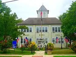 Elmer is governed under the borough form of New Jersey municipal government, which is used in 218 municipalities (of the 564) statewide, making it the most common form of government in New Jersey.[39] The governing body is comprised of the mayor and the borough council, with all positions elected at-large on a partisan basis as part of the November general election. The mayor is elected directly by the voters to a four-year term of office. The borough council includes six members elected to serve three-year terms on a staggered basis, with two seats coming up for election each year in a three-year cycle.[7] The borough form of government used by Elmer is a "weak mayor / strong council" government in which council members act as the legislative body with the mayor presiding at meetings and voting only in the event of a tie. The mayor can veto ordinances subject to an override by a two-thirds majority vote of the council. The mayor makes committee and liaison assignments for council members, and most appointments are made by the mayor with the advice and consent of the council.[40][41]