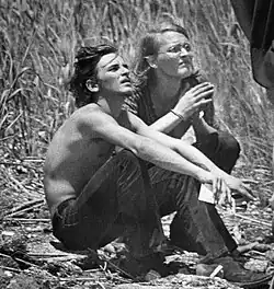 Seventeen victims in varying stages of decomposition would be recovered from the boat shed on August 8 and 9, with four separate arm bones not belonging to any victim—each appendage later confirmed to belong to the same individual—also recovered on the second day of the search.[149] All of the victims found had been sodomized and most victims found bore evidence of having been subjected to brutality and sexual torture: pubic hairs had been plucked out,[n 9] objects had been inserted into their rectums, and glass rods had been inserted into their urethrae and smashed.[151] Cloth rags had also been inserted into the victims' mouths and adhesive tape wound around their faces to muffle their screams.[152] One victim had been emasculated, whereas the penis of another victim had been almost completely severed by human teeth. The eighth victim recovered was found buried with an electrical cord with alligator clips attached to each end;[153] the thirteenth and fourteenth bodies unearthed bore identification cards naming the victims as brothers Donald and Jerry Waldrop,[154] whereas the body of the fifteenth victim had suffered several fractured ribs prior to his murder.[155]